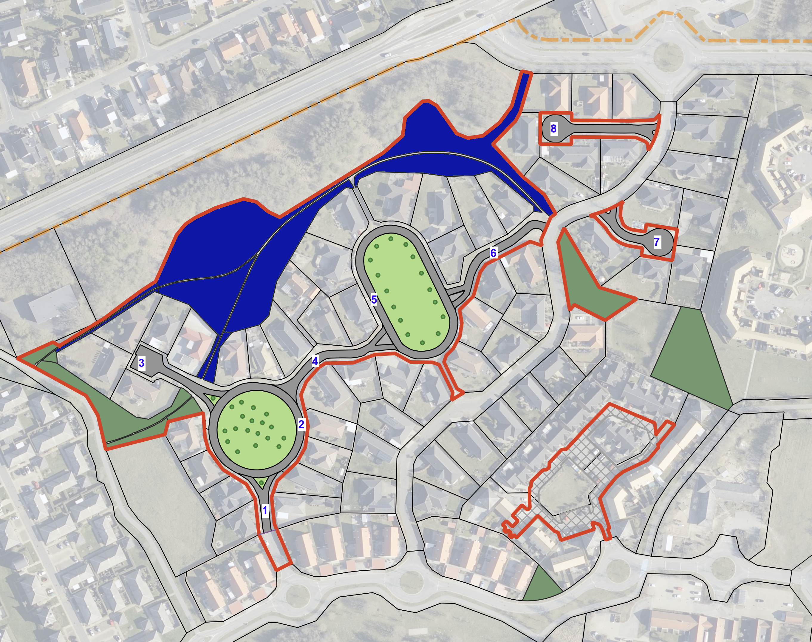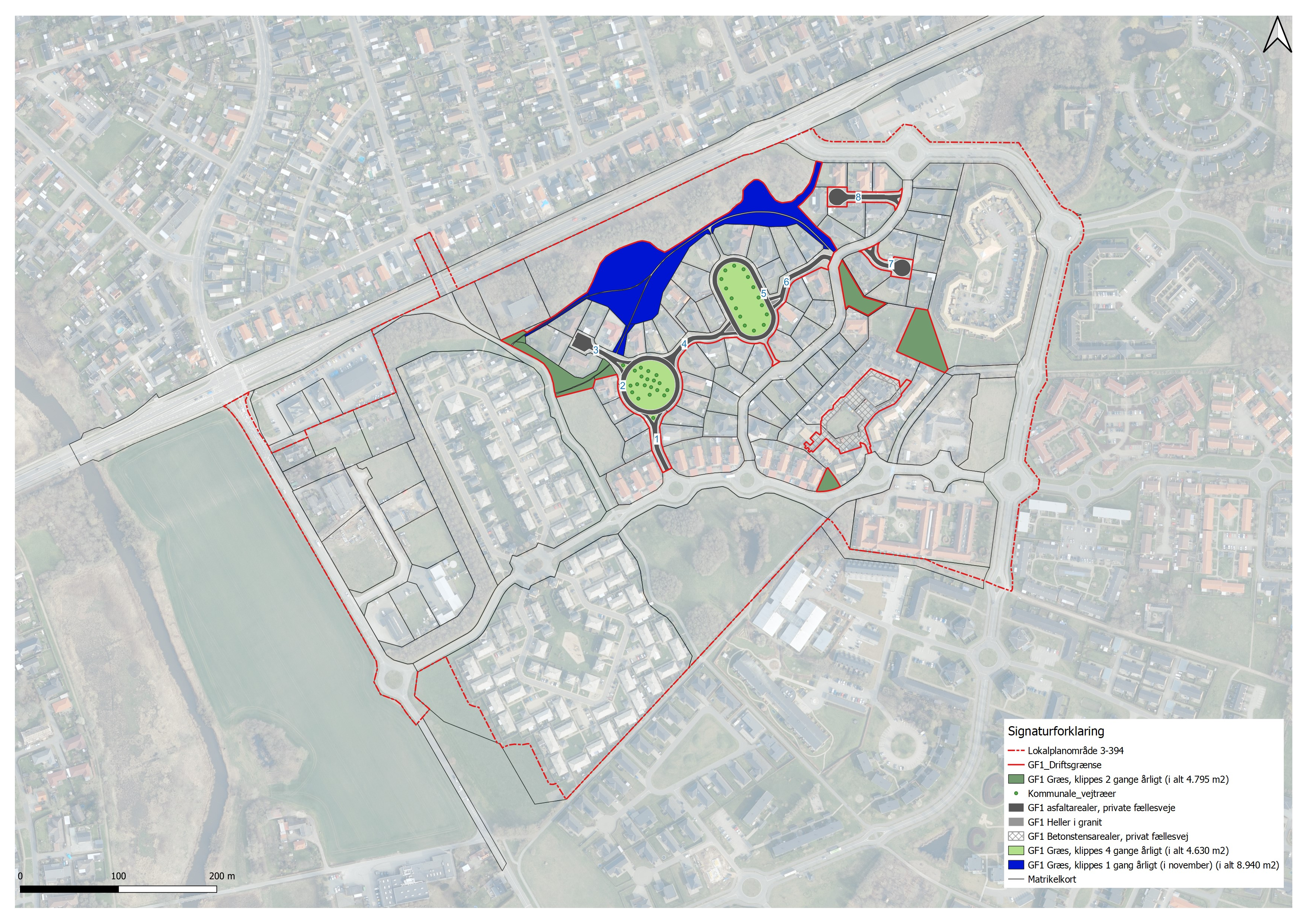 Dette kort viser de forskellige græsarealer, GF1 har ansvaret for. | ||||||